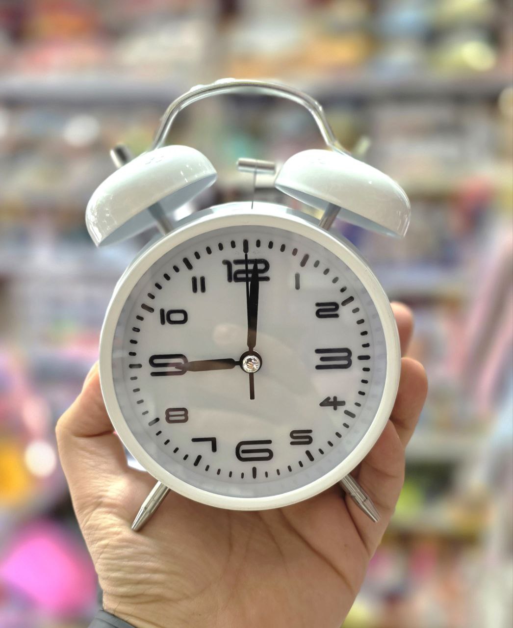 ساعت زنگدار رومیزی فلزی صفحه سفید