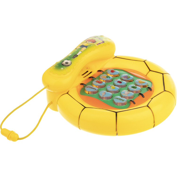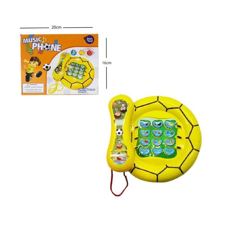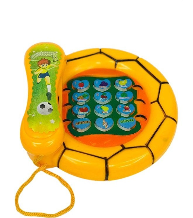 تلفن موزیکال shuyi اسباب بازی تلفن موزیکال طرح توپ یک اسباب بازی چند منظوره است که هم جنبه ی آموزشی داشته و هم با پخش موسیقی های شاد بسیار جذاب و سرگرم کننده است. تلفن اسباب بازی نیاز به 3 عدد باتری 1.5 ولتی دارد. هنگامی که دکمه ی روشن را بفشارید امکان تغییر عملکرد به دو حالت هست.