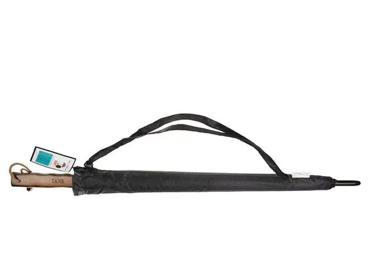 فنر فلزی مقاوت در برابر تند باد و استحکام بالای فریم فلزی رنگ روی چتر مشکی و داخل نقره ای دسته چوبی کاور پوششی چتر همراه با بند قابل تنظیم شانی بند دستی دسته چتر