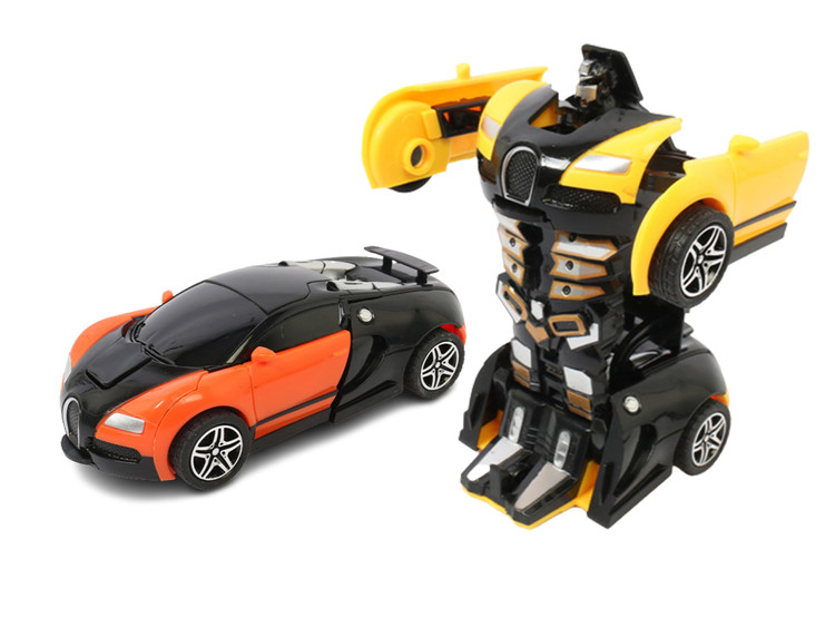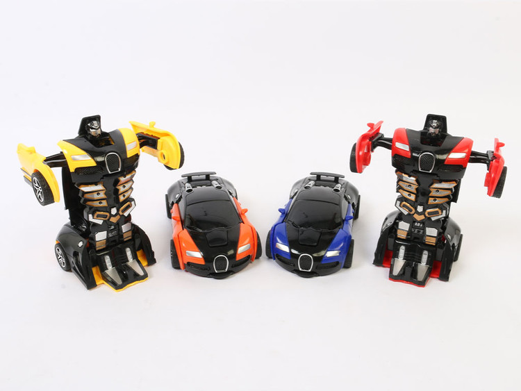 این اسباب بازی به باتری نیاز ندارد و به صورت قدرتی کار می کند. با برخورد محکم آن به دیوار یا موانع محکم به یک ربات تبدیل می شود.