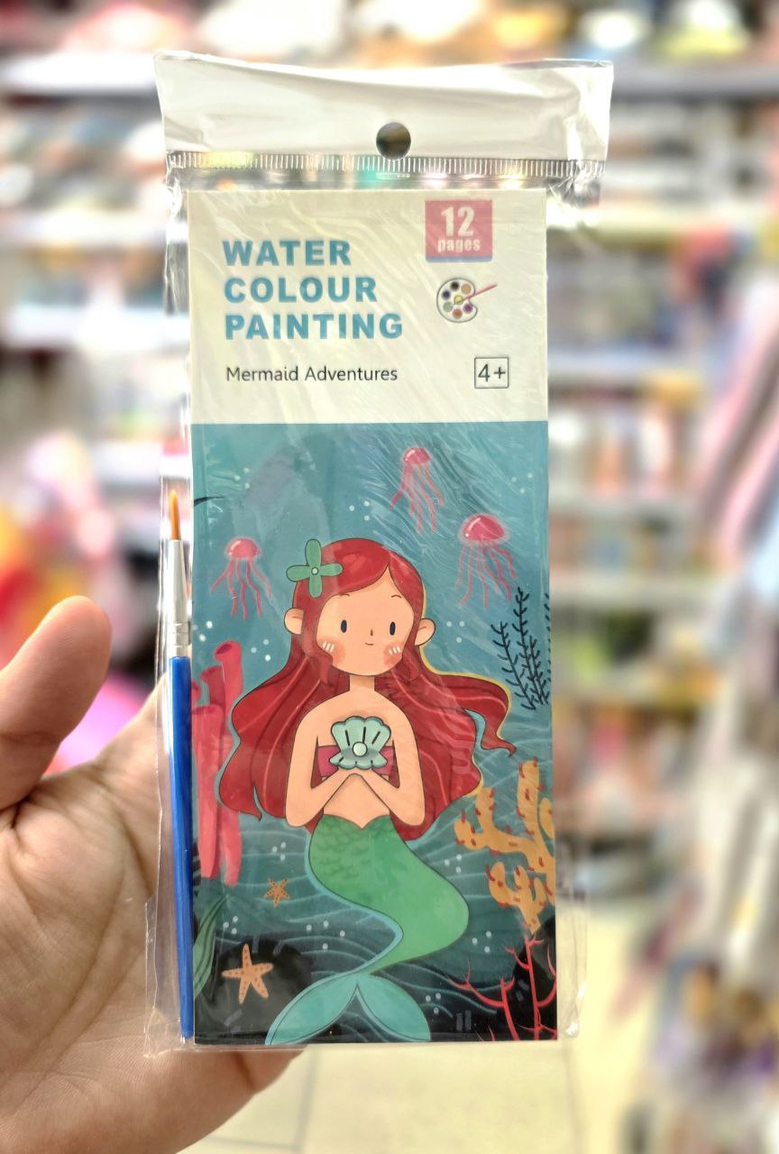 دفترچه آبرنگی طرح پری دریایی همراه قلمو و آبرنگ