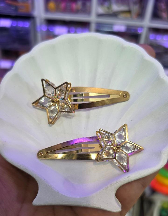 گیره مو تق تقی نگین دار طلایی طرح ستاره