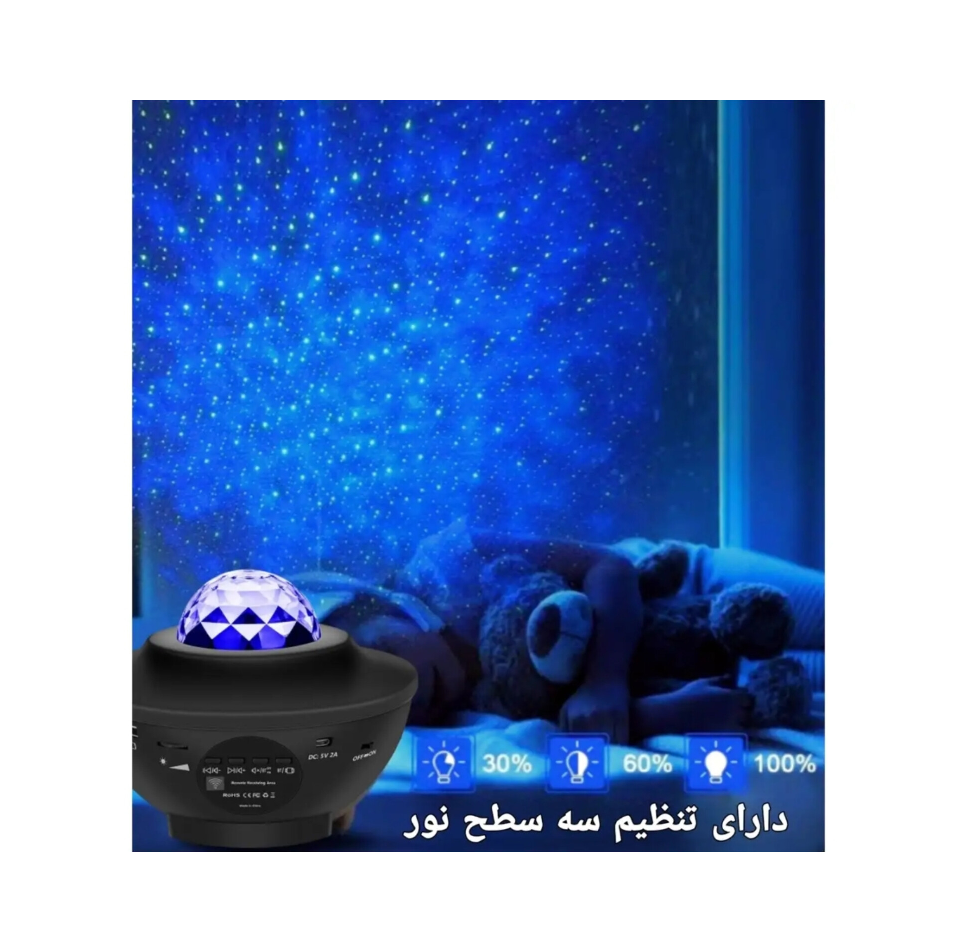 از این محصول میتونید در مهمانیها، اتاق مهمان، اتاق رویداد و اسپای خانگی برای ایجاد یک آسمان پرستاره و پخش موسیقی استفاده کنید.