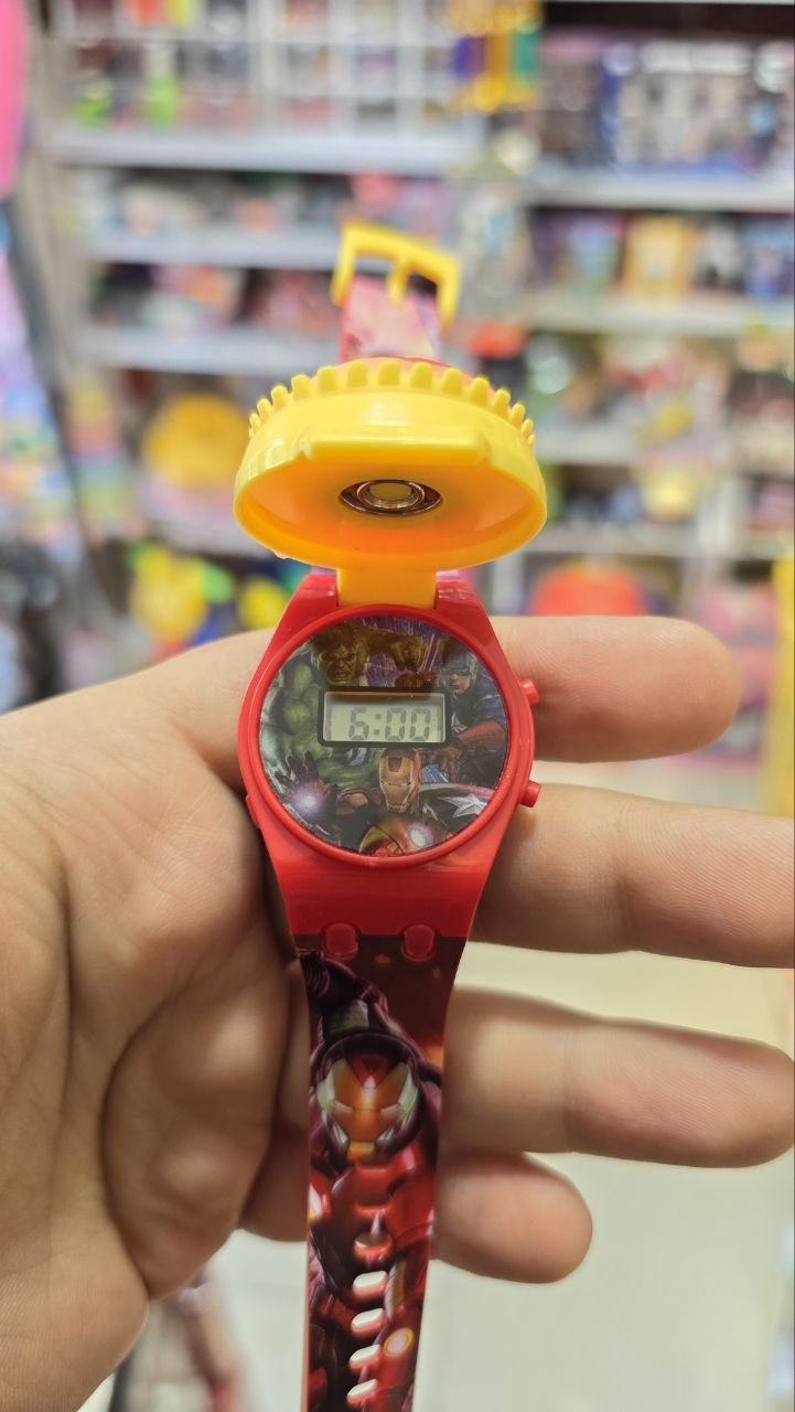ساعت پسرانه چراغ دار و اسپینری طرح مرد آهنی ایرومن