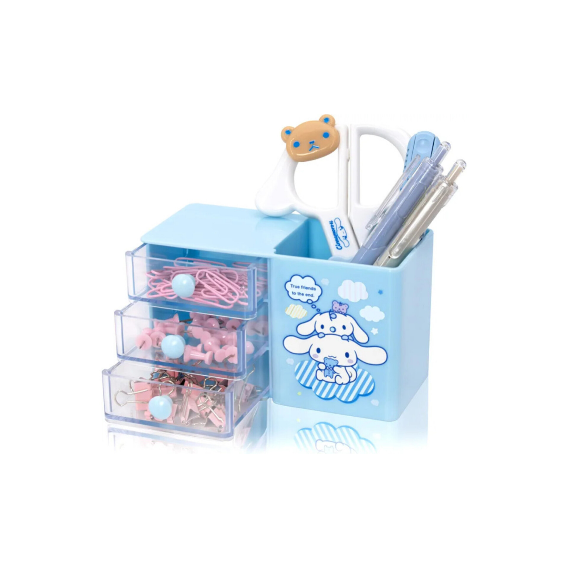 جاقلمی برای نگهداری قلم، مداد یا خودکار استفاده می شود. این نوع جاقلمی دارای بدنه ای ساخته شده ازپلاستیک فشرده می باشد و همچنین کشوهای این جاقلمی باعث کاربردی تر شدن جاقلمی برای جاگذاری پاکن و اقلام کوچک تعبیه شده است روی آن جلوه ای ویژه به این محصول بخشیده است. همچنین به عنوان زینت بخش میز دانش آموزان و دانشجویان نیز مورد استفاده قرار میگیرد.دوام بالا و همچنین طرح های ترند و کیوت و جذاب بودن و تنوع بالای طرح ها و رنگ ها باعث خاص بودن این جاقلمی گردیده است.