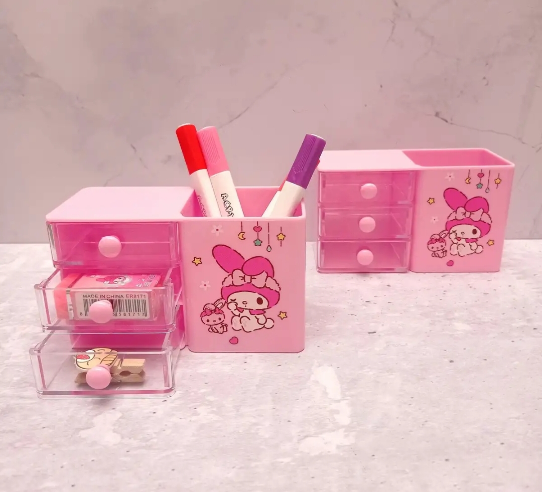 جاقلمی برای نگهداری قلم، مداد یا خودکار استفاده می شود. این نوع جاقلمی دارای بدنه ای ساخته شده ازپلاستیک فشرده می باشد و همچنین کشوهای این جاقلمی باعث کاربردی تر شدن جاقلمی برای جاگذاری پاکن و اقلام کوچک تعبیه شده است روی آن جلوه ای ویژه به این محصول بخشیده است. همچنین به عنوان زینت بخش میز دانش آموزان و دانشجویان نیز مورد استفاده قرار میگیرد.دوام بالا و همچنین طرح های ترند و کیوت و جذاب بودن و تنوع بالای طرح ها و رنگ ها باعث خاص بودن این جاقلمی گردیده است.