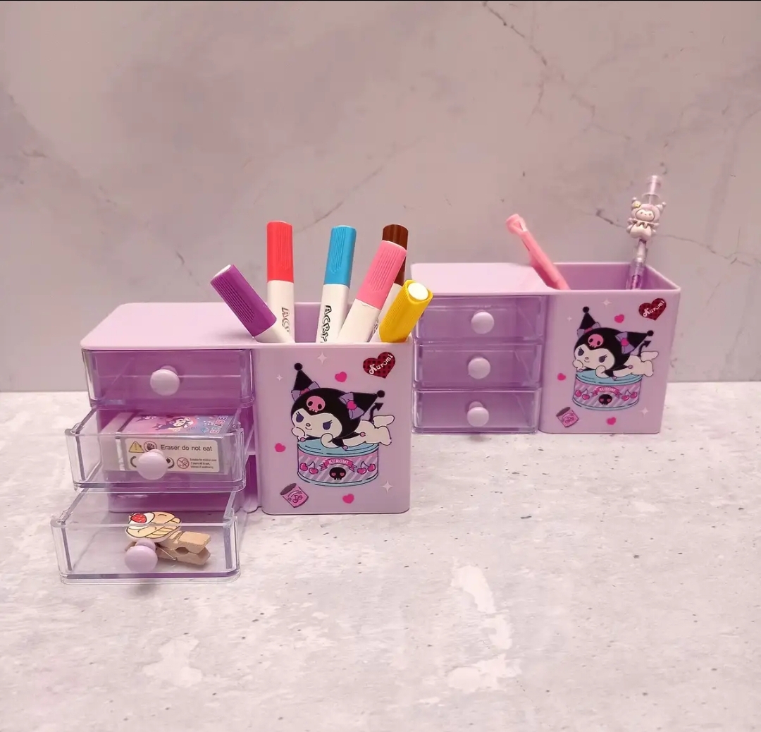 جاقلمی برای نگهداری قلم، مداد یا خودکار استفاده می شود. این نوع جاقلمی دارای بدنه ای ساخته شده ازپلاستیک فشرده می باشد و همچنین کشوهای این جاقلمی باعث کاربردی تر شدن جاقلمی برای جاگذاری پاکن و اقلام کوچک تعبیه شده است روی آن جلوه ای ویژه به این محصول بخشیده است. همچنین به عنوان زینت بخش میز دانش آموزان و دانشجویان نیز مورد استفاده قرار میگیرد.دوام بالا و همچنین طرح های ترند و کیوت و جذاب بودن و تنوع بالای طرح ها و رنگ ها باعث خاص بودن این جاقلمی گردیده است.