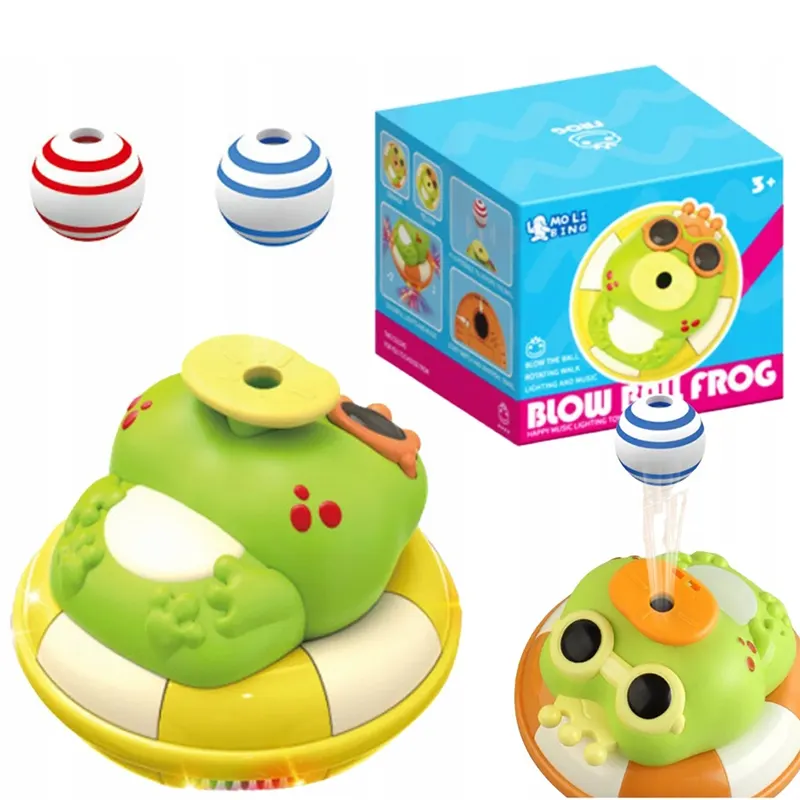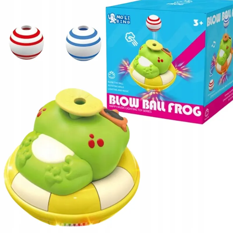 اسباب بازی موزیکال قورباغه و توپ فوتی برای گروه سنی 3 سال به بالا است. این قورباغه توپ فوت کن علاوه بر موسیقی و که داره میتونه راه بره و بچرخه و در حین حرکت توپ رو فوت کنه و ساعت ها کوچولوها رو سرگرم کنه. این قورباغه موزیکال با 3 عدد باطری قلمی کار میکند. جنس این قورباغه موزیکال از پلاستیک درجه یک ساخته شده و برای بچه های بالای 3 سال می تونه یک هدیه عالی باشه. این ربات موزیکال هم به عنوان اسباب بازی پسرانه و هم اسباب بازی دخترانه محبوبه. اسباب بازی قورباغه موزیکال یک قورباقه بامزه و یک اسباب بازی هیجان انگیز میباشد که روی یک تیوپ نارنجی و زرد خوابیده و میتواند توپ را به هوا فوت کند. با استفاده از 3 عدد باتری قلمی که به آن متصل میشود شروع به حرکت، پخش موزیک و راه رفتن میکند و میتواند کودکان را ساعت ها سرگرم نماید. این قورباغه 2 عدد توپ فومی دارد که با قرار دادن توپ در راستای دهان قورباغه آن را روی هوا نگه میدارد. این قورباغه هنگام چرخیدن و موزیک خوندن توپ را فوت میکند که جذابیت را برای کودکان دو چندان میکند. تمامی لبه های این اسباب بازی کودکانه موزیکال گرد و این است خطری برای کودک ندارد.