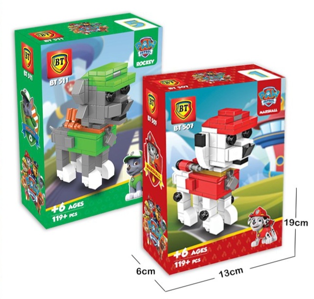 کارتون سگ های نگهبان یکی از محبوب ترین انمیشن ها برای کودکان است. لگو پیش روی شما برگرفته از این کارتون جذاب است. در باکس 6 عددی محصول شما شاهد شخصیت های rockey , rubble , marshall , zuma , chase , skye هستید.