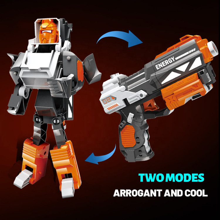 رنگبندی جذاب مشکی، سفید و نارنجی جلوهای مدرن و هیجانانگیز به این اسباببازی داده و آن را به انتخابی محبوب برای کودکان علاقهمند به رباتها و اسباببازیهای تبدیلشونده تبدیل کرده است. بازی با این تفنگ تبدیلشونده، علاوه بر سرگرمی، به تقویت خلاقیت، هماهنگی دست و چشم و مهارتهای حرکتی کودک کمک میکند
