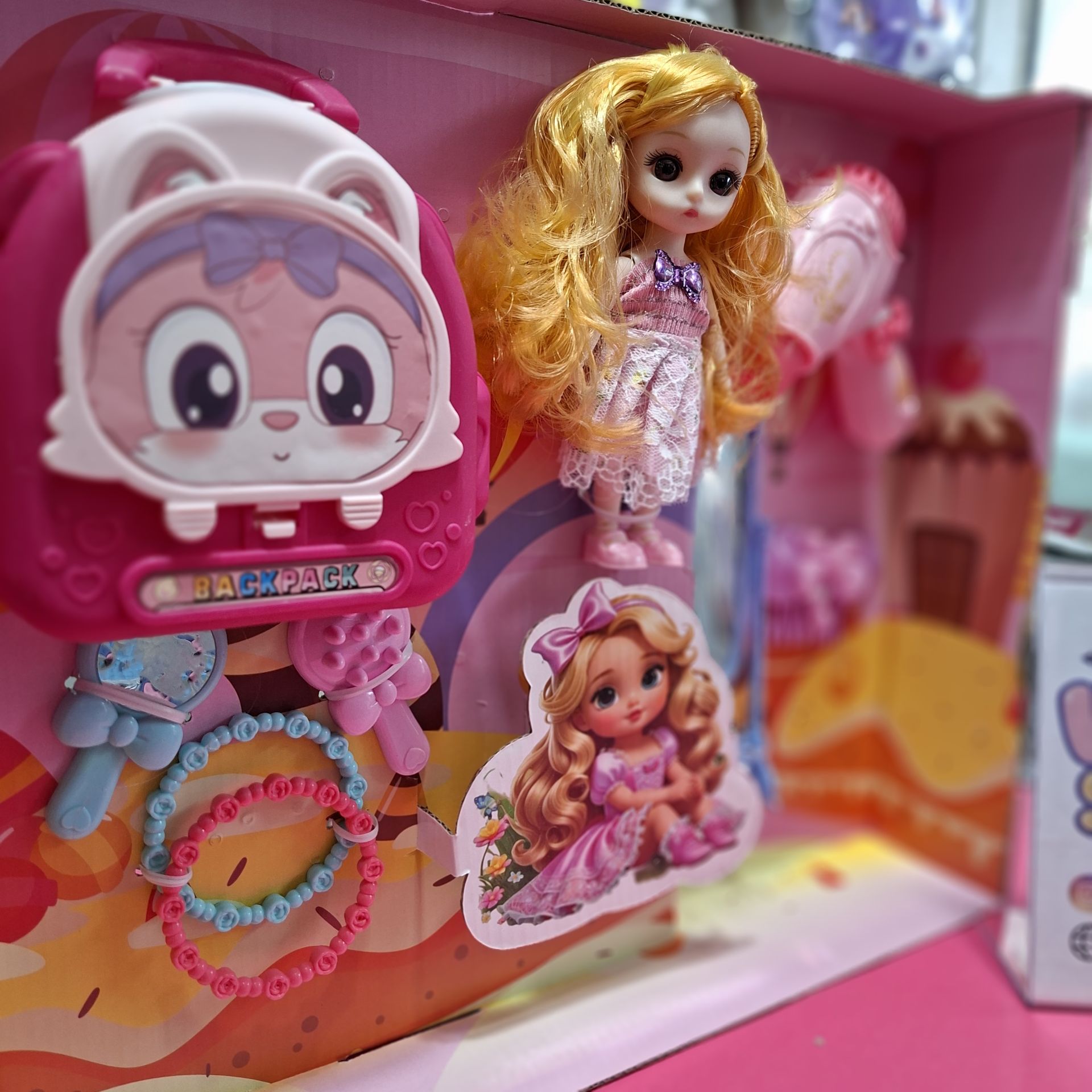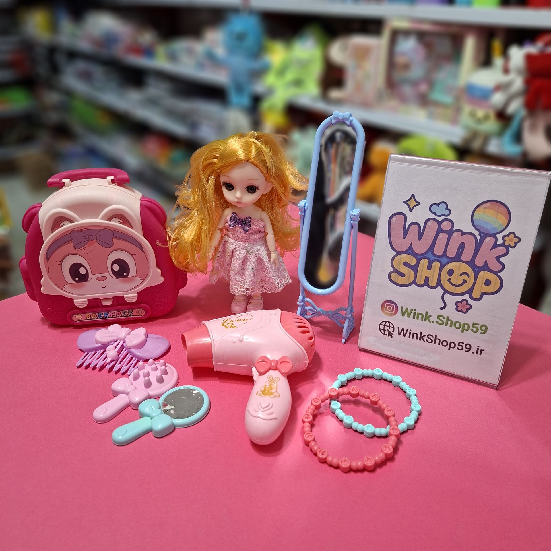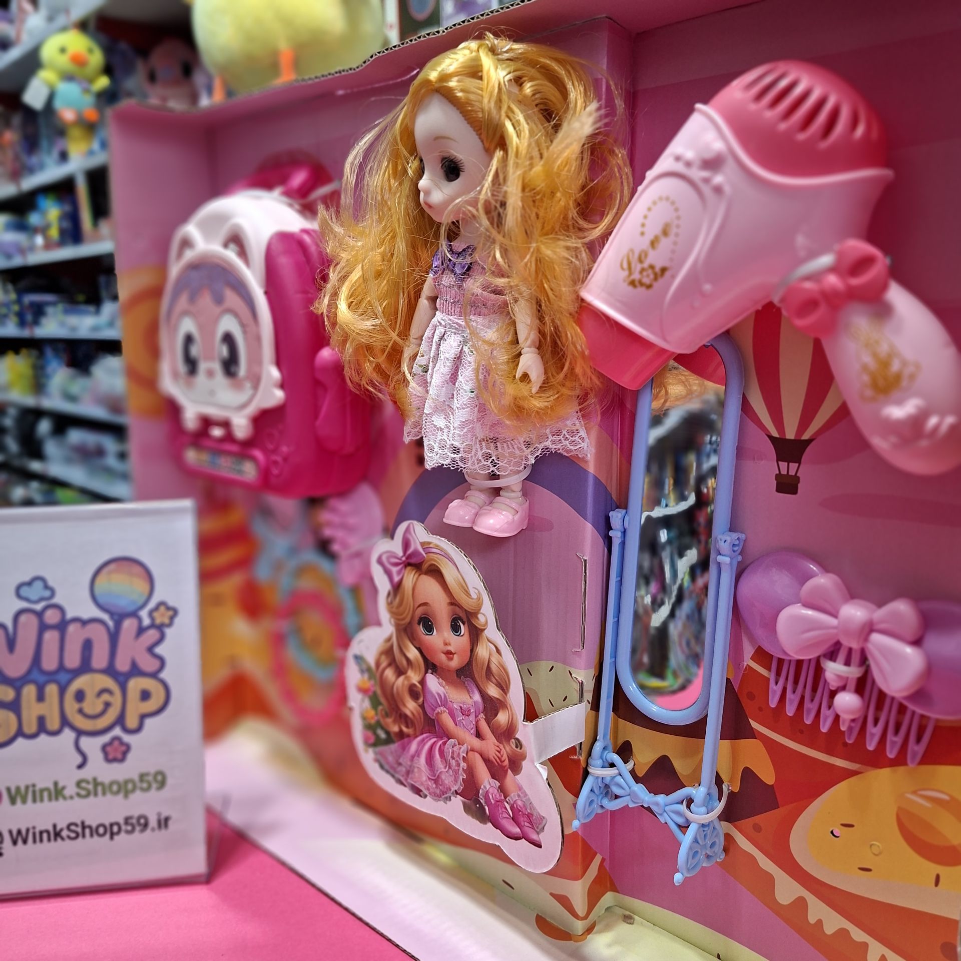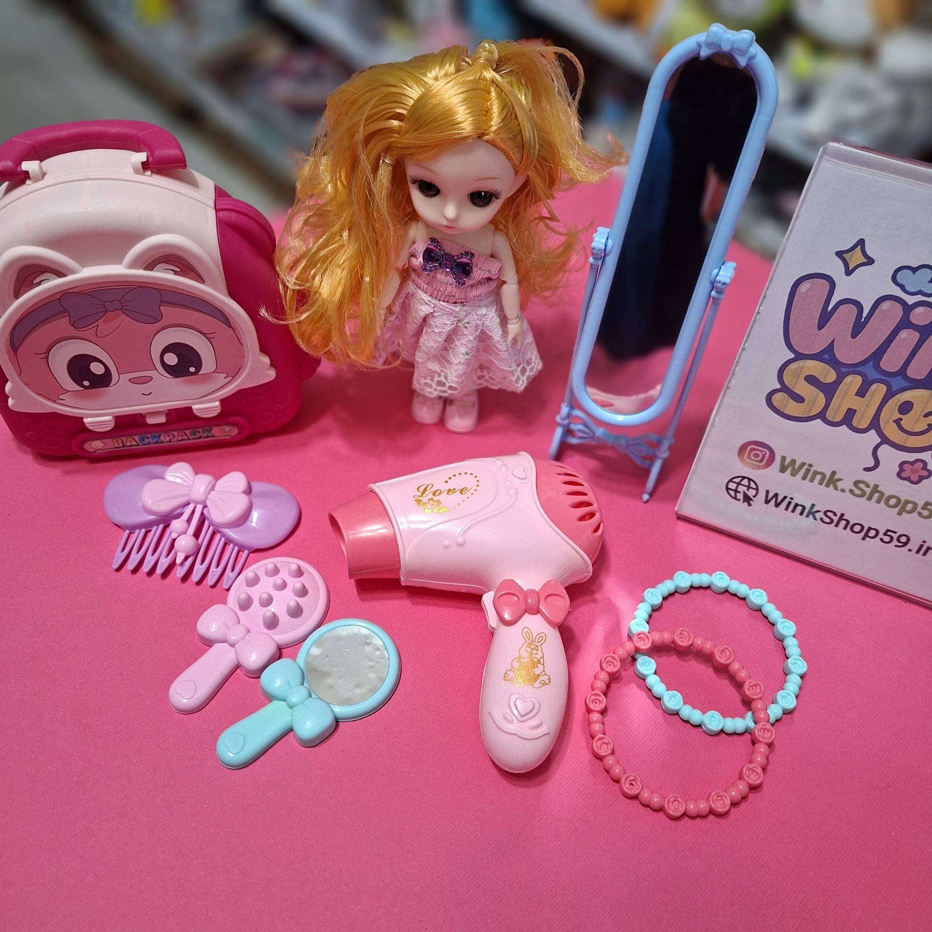 عروسک باربی چشم تیله ای مفصلی همراه لوازم کد ۰۲۳۴