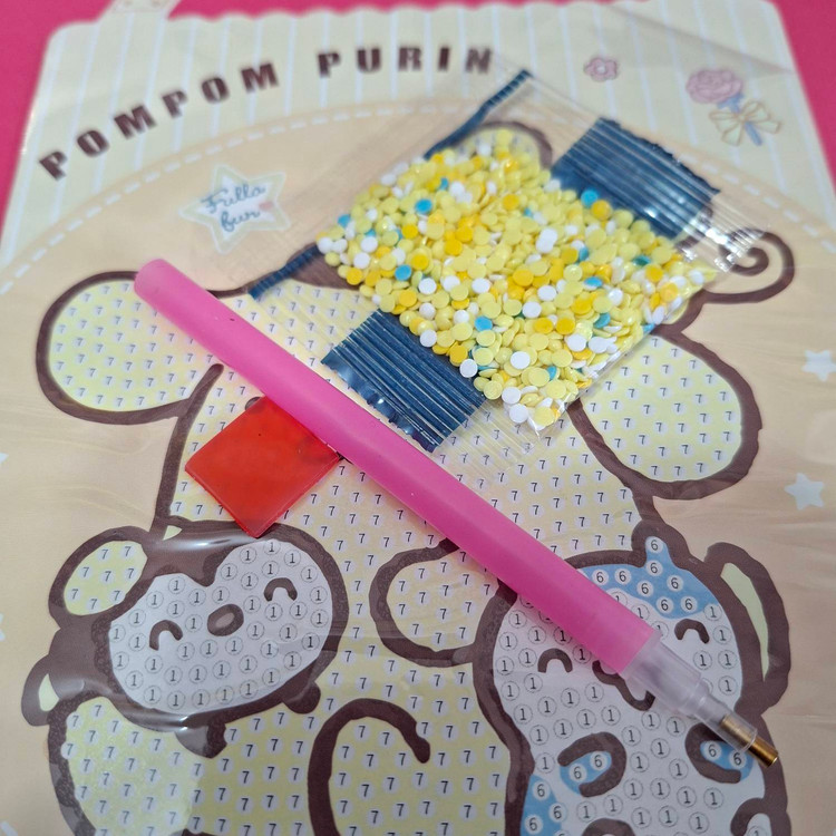 محتویات بسته : بوم چسبدار با طرح چاپشده - الماسهای رنگی شمارهگذاریشده - قلم مخصوص چسباندن الماس - سینی نگهدارنده الماس - موم مخصوص چسباندن