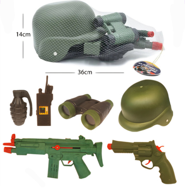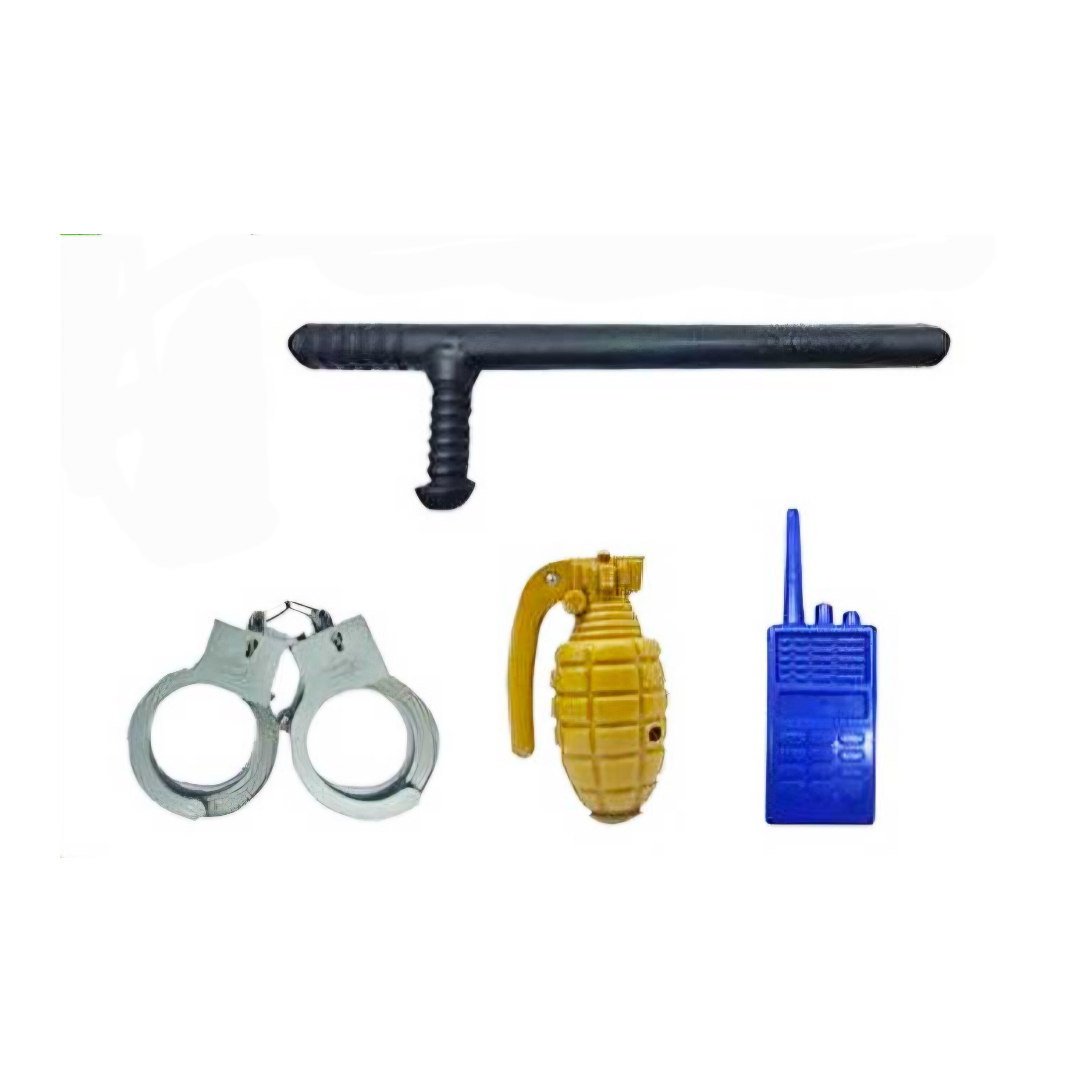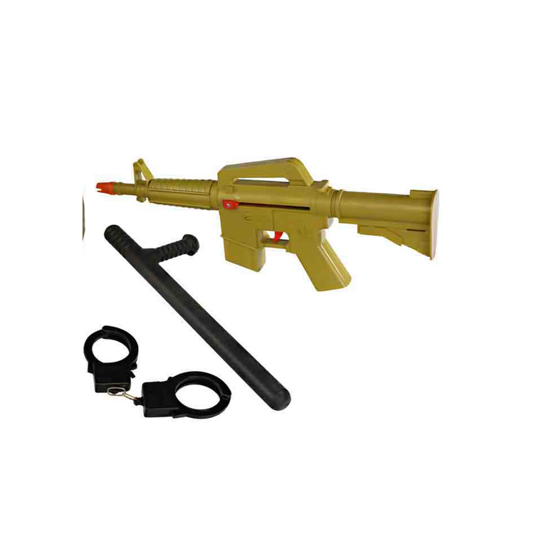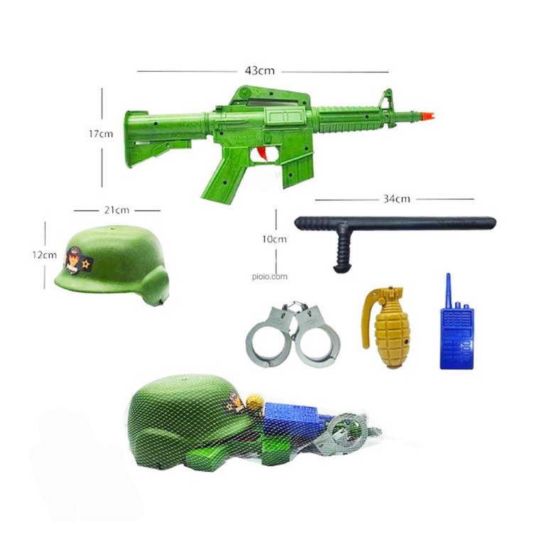 دارای6 قطعه : تفنگ،بیسیم،نارنجک، دستبند،کلاه پلیس وباتوم