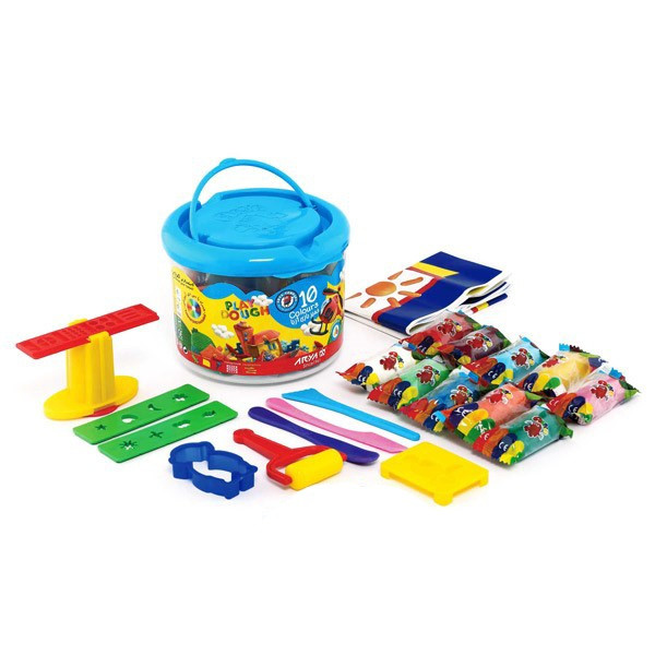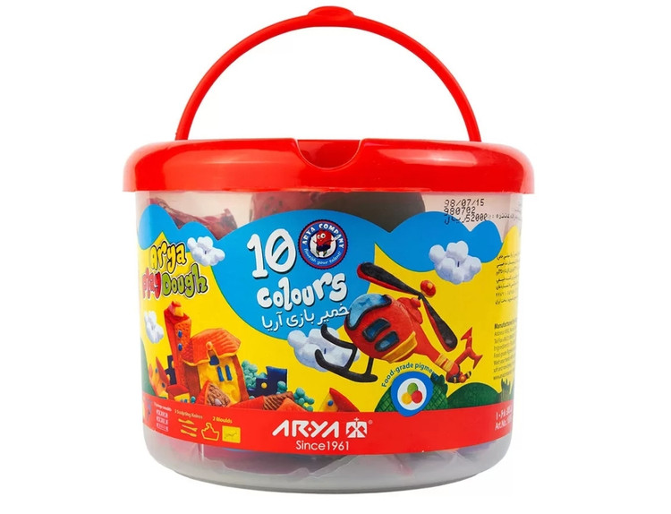 خمیر بازی سطلی 10 رنگ آریا به همراه ابزار
