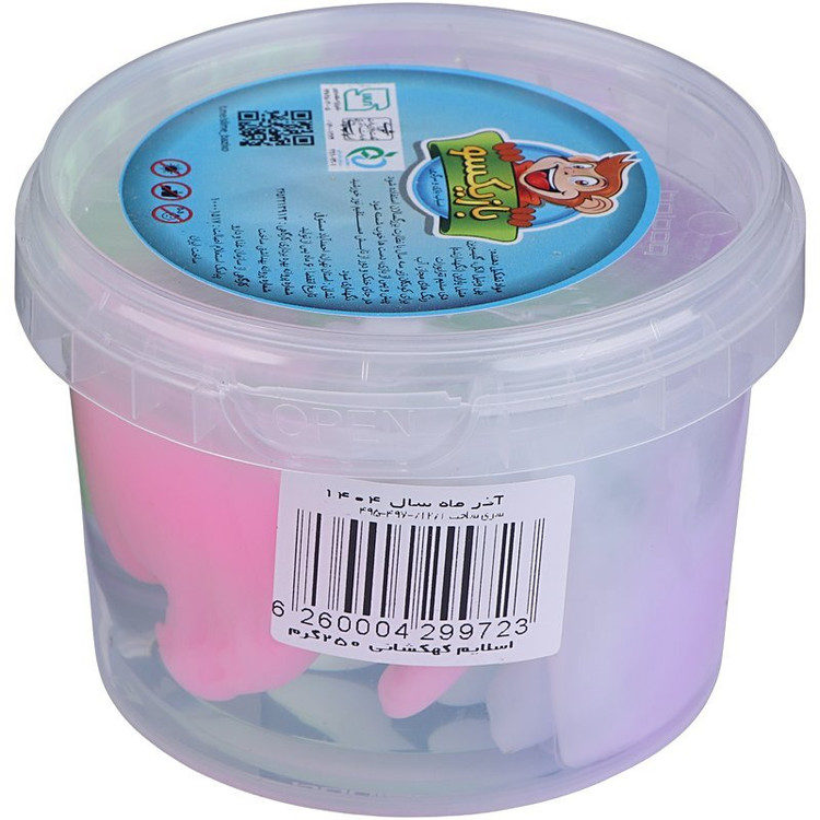 دارای جنس خمیری و منعطف رنگی، بسته بندی بصورت سطل پلاستیکی با حجم 250 گرم
