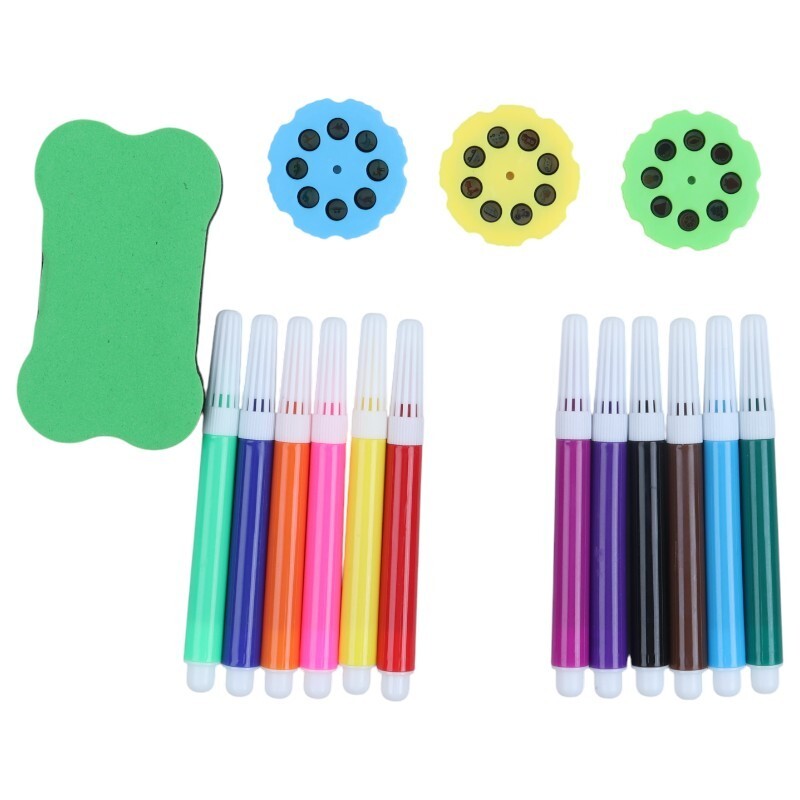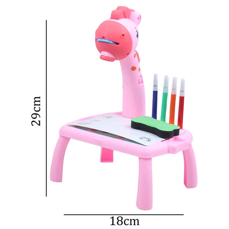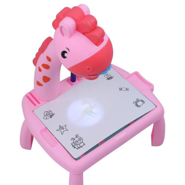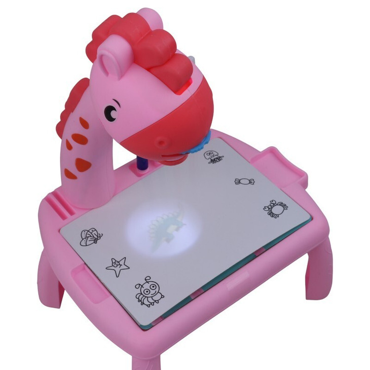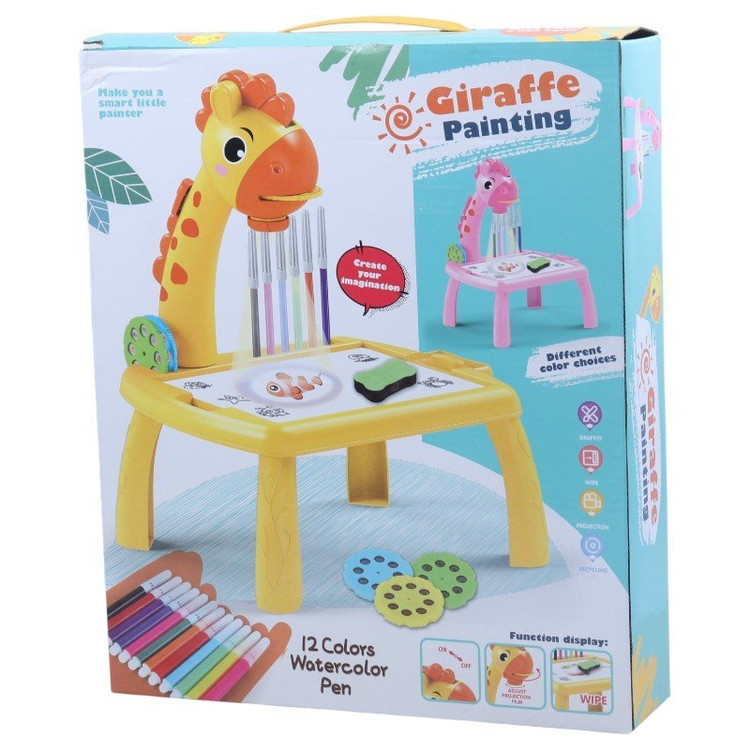 شامل یک پروژکتور طرح زرافه، 3 اسلاید طراحی، یک بسته ماژیک 12 رنگ و یک تخته پاک کن