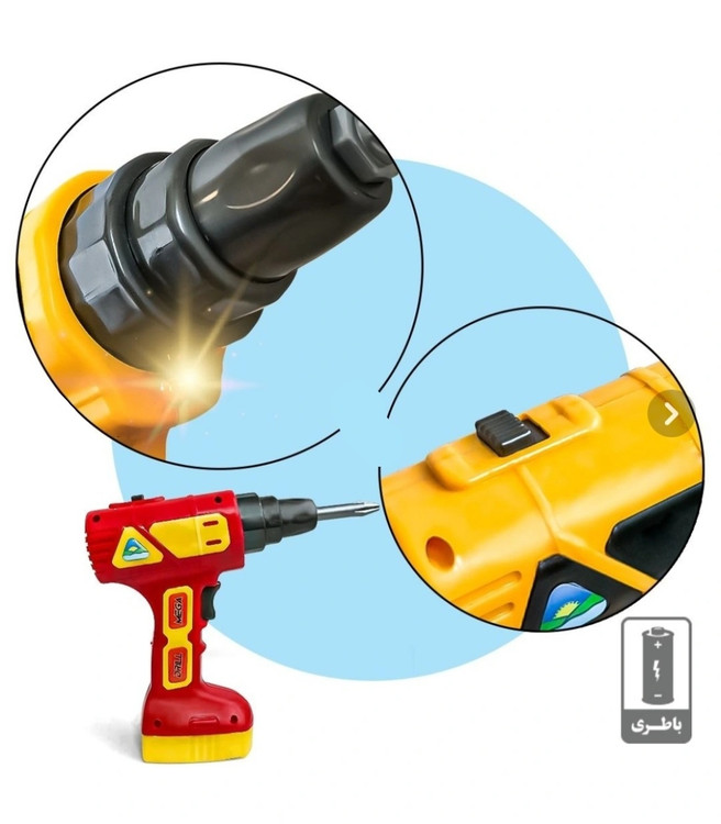 ست دریل باتری خور یه اسباب بازی مخصوص پسرها که دوست دارند از پدرشان تقلید کرده و به تعمیر وسایل منزل بپردازند.