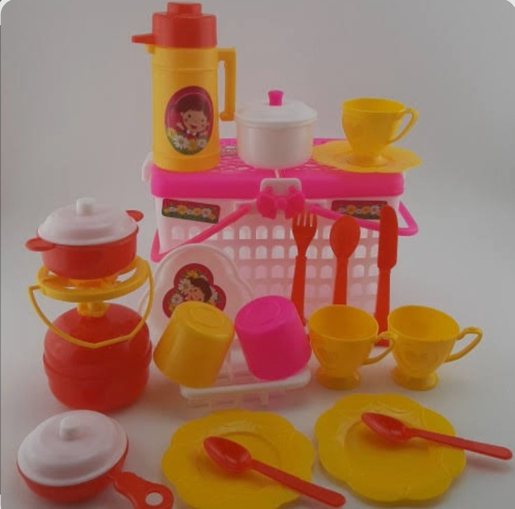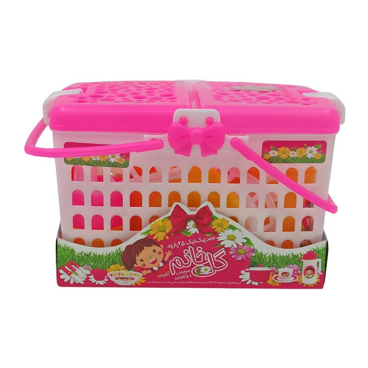 سبد 25 پارچه گل خانم، یک اسباب بازی محبوب برای دختر خانم هاست. این ست زیبا و دخترانه شامل ،سبد پیک نیک، فلاسک، 3 عدد فنجان و نعلبکی، قاشق،چنگال، چاقو، ۲ عدد قابلمه، پیک نیک، ماهیتابه،۲ عدد لیوان و2 عدد سبد آبکشی می باشد. کودک شما می تواند با استفاده از این سرویس زیبا آشپزی را برای خود شبیه سازی کند. دخترها با استفاده از سبد 25 پارچه خانم گل می توانند یک روز بسیار خوب را برای خود و هم بازی هایشان به ارمغان آورند. کودک شما می تواند به صورت تقلیدی نمایشی با این سرویس زیبا سرگرم شود. کودک در تخیل خود می تواند بهترین غذاها را برای خود و دیگران بپزد.