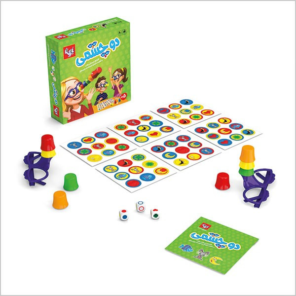دو چشمی یک بازی گروهی شاد و پر از هیجان ۲ تا ۴ نفره است. این بازی شامل چهار عینک مخصوص، ۲۰ لیوان کوچک در رنگ بندی های مختلف، ۳ تاس بازی و ۶ کارت تصاویر است.