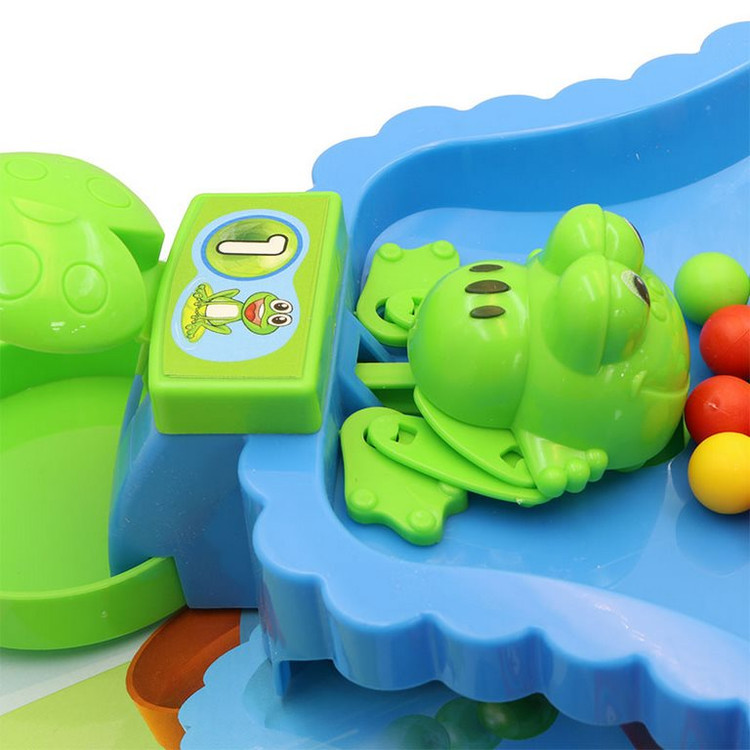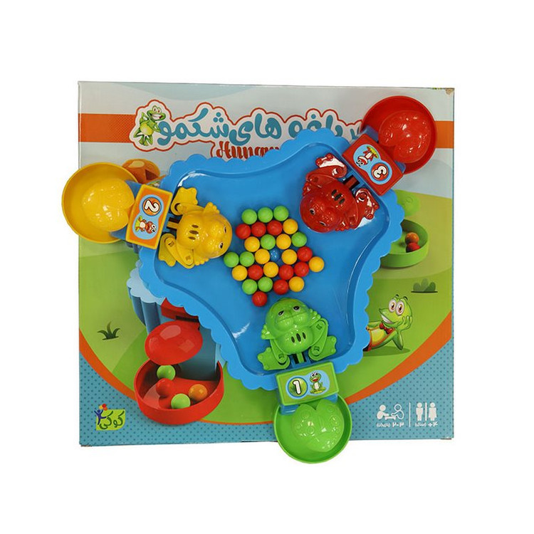 فشار دادن یک اهرم و دیدن اینکه چطور قورباغه به جلو میپرد و توپهای کوچک را میبلعد فعالیتی است که به احتمال زیاد کودکان را به وجد میآورد. بازی قورباغه های شکمو (Hungry Frogs) چنین مکانیزمی دارد؛ روی یک صفحهی برکه مانند پلاستیکی تعدادی توپ کوچک رنگی ریخته میشود و سه قورباغه که در سه گوشهی صفحه قرار دارند با فشار اهرم به جلو میپرند و توپها را میبلعند. با تمام شدن توپهای وسط، کسی که قورباغهاش بیشترین توپ را بلعیده باشد برنده است.