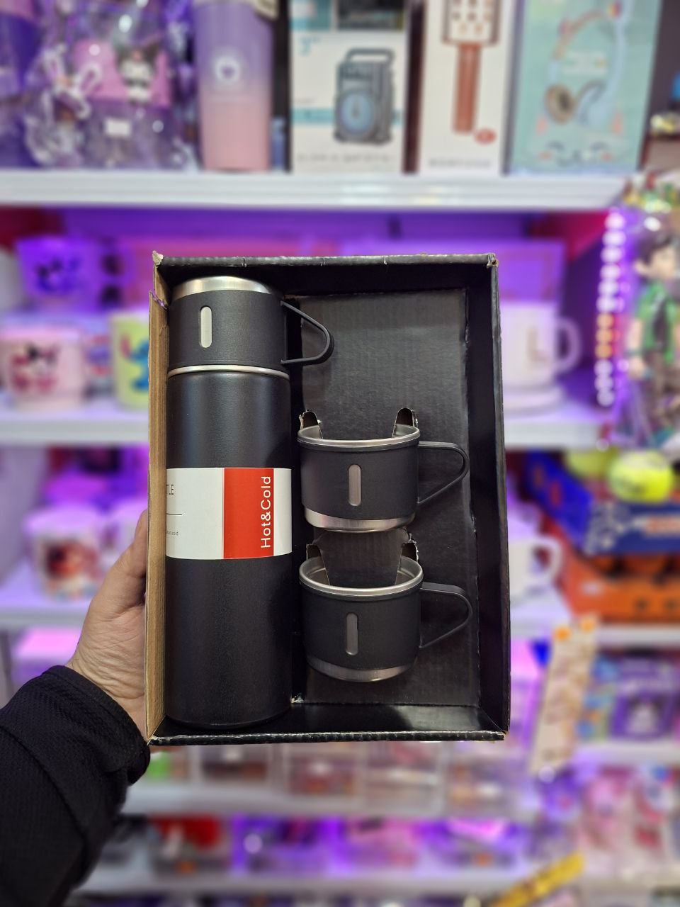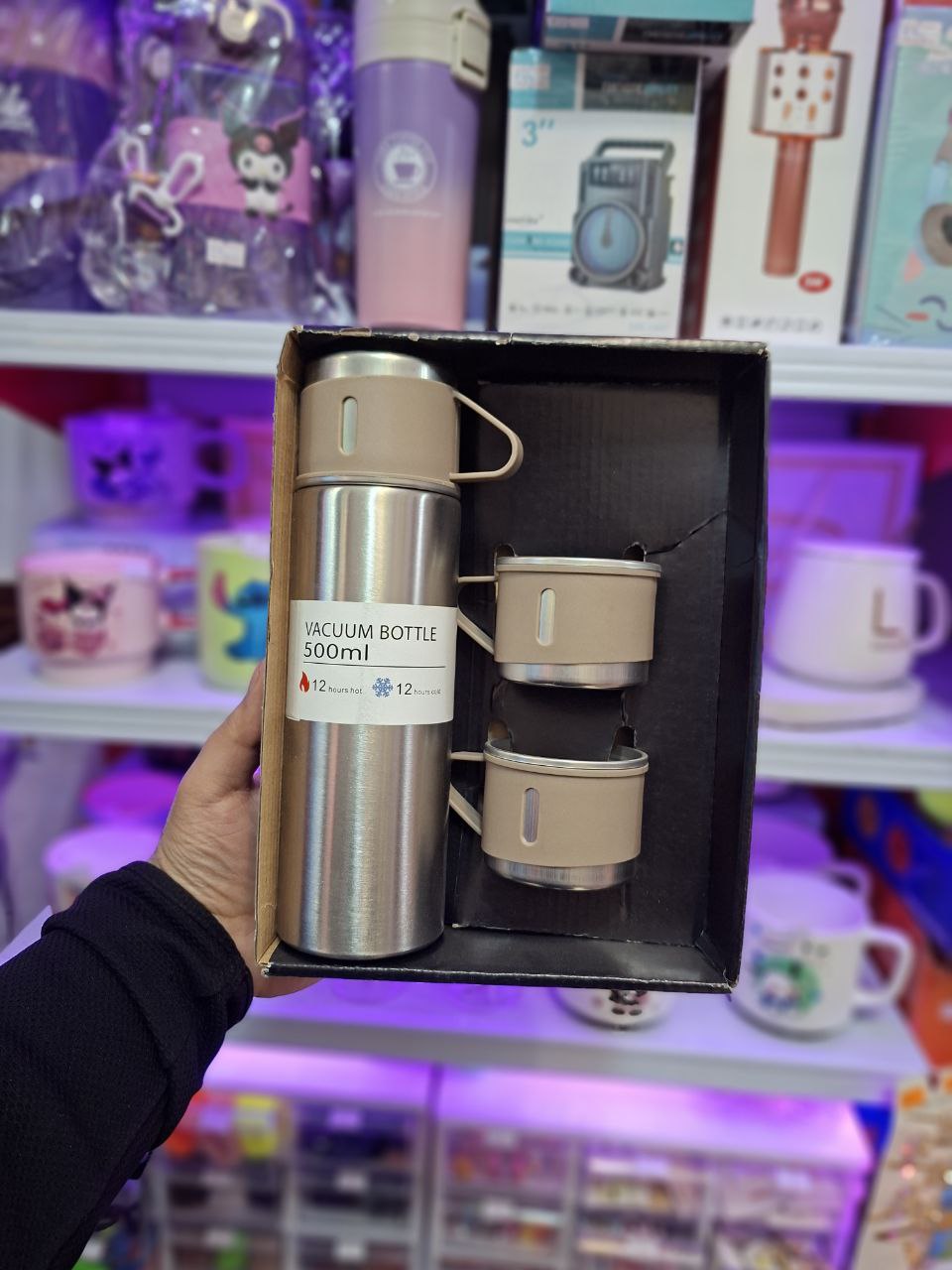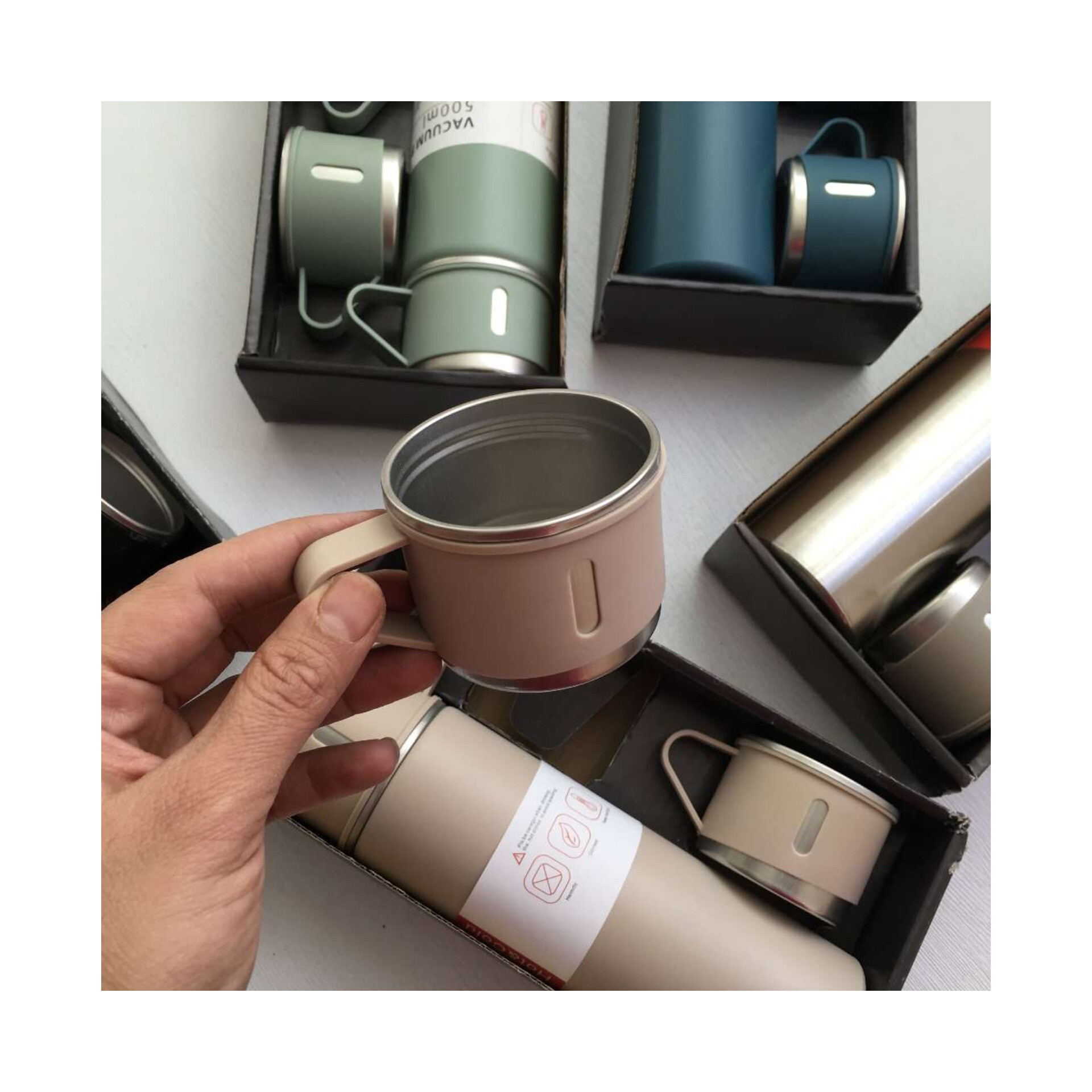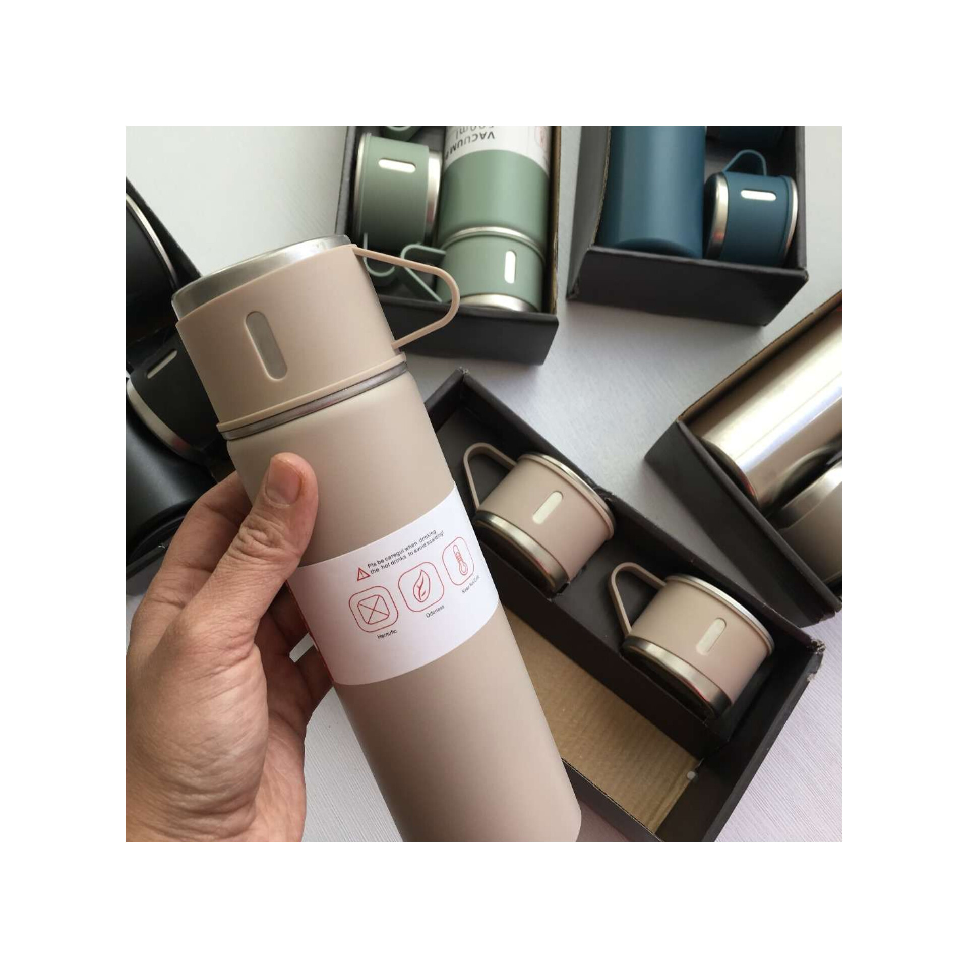 فلاسک مدل مسافرتی حجم نیم لیتری همراه ۳ عدد لیوان