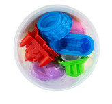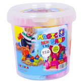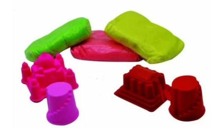 شن جادویی یک کیلویی ، یک ظرف پلاستیکی بزرگ دارد که داخل آن چهار بسته شن جادویی 250 گرمی با رنگهای مختلف قرار دارد. همچنین چهار عدد قالب پلاستیکی هم داخل این ظرف قرار داده شده تا فرزند دلبند شما بتواند با آنها اشکال مختلفی درست کند و ساعتها مشغول بازی شود. این قالبها به شکلهای مختلف و جذابی هستند که مورد توجه. شن جادویی یک کیلویی، حجم خیلی مناسبی دارد و هم مناسب بازی تکنفره بچهها و هم مناسب بازی چندنفره است.
