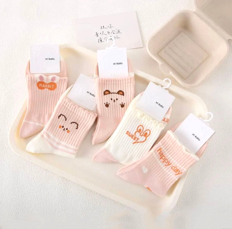 جوراب زنانه نیم ساق طرح هپی صورتی