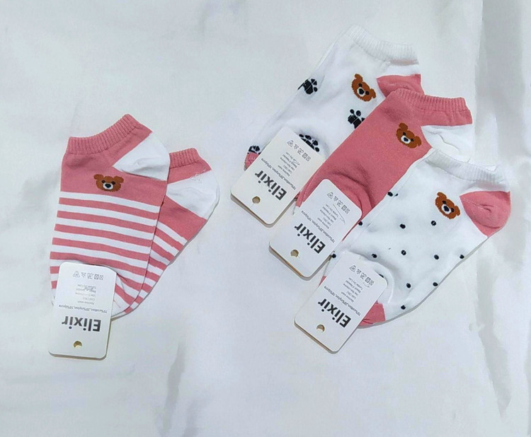 جوراب زنانه مچی طرح خرس رنگ صورتی
