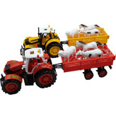 تراکتور مزرعه همراه حیوانات محصول شرکت ایرانی و شناخته شده درج است که اسباب بازی هایی درابعاد بزرگ با کیفیت بالا تولید میکند. همراه این تراکتور یک یدک کش وماکت حیوانات مزرعه مانند اسب، گوسفند و بز وجود دارد. در این مجموعه جزئیات به خوبی رعایت شده است و اندازه بزرگ این اسباببازی برای کودکان بسیار جذاب است.