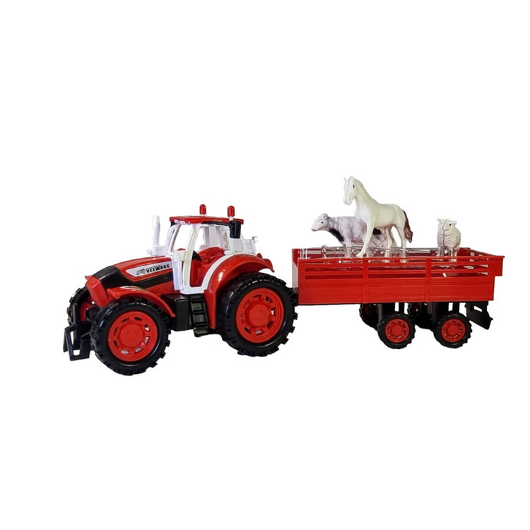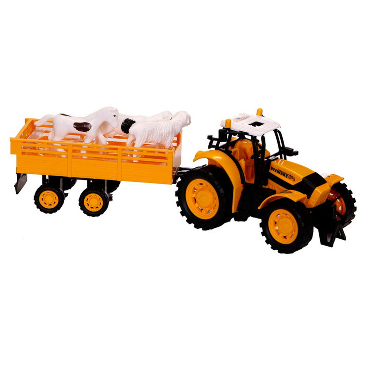 تراکتور مزرعه همراه حیوانات محصول شرکت ایرانی و شناخته شده درج است که اسباب بازی هایی درابعاد بزرگ با کیفیت بالا تولید میکند. همراه این تراکتور یک یدک کش وماکت حیوانات مزرعه مانند اسب، گوسفند و بز وجود دارد. در این مجموعه جزئیات به خوبی رعایت شده است و اندازه بزرگ این اسباببازی برای کودکان بسیار جذاب است.