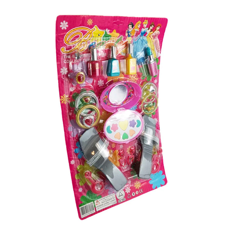 ست آرایشی دمپایی دار از اسباب بازی های با کیفیت و ترکیب رنگ و جانمایی چشم نواز که با جذابیت خاصی ساخته شده است .این بازی ، از بازی های زیبا و جذاب را برای کودکان بشمار می آید، و کودک ساعت ها با این سبک بازی سرگرم میباشد. اقلام همراه:النگو ، انگشتر ، سایه چشم ، گوشواره ؛ لاک ، رژ و دمپایی