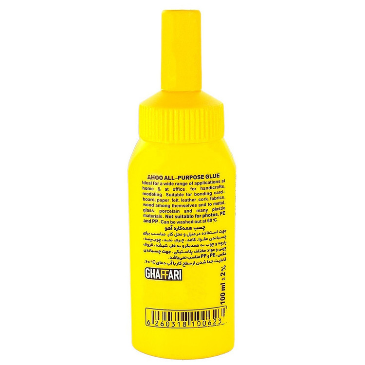 چسب آهو محصولی بر پایه آب , شفاف و بدون حلال می باشد که هیچ خوردگی در سطوح مورد استفاده ایجاد نکرده و توانایی استفاده در مصارف مختلفی از جمله چسباندن کاغذ ,مقوا,کاردستی, ماکت سازی و چسباندن قطعات یونولیت (بدون خوردگی) را دارد