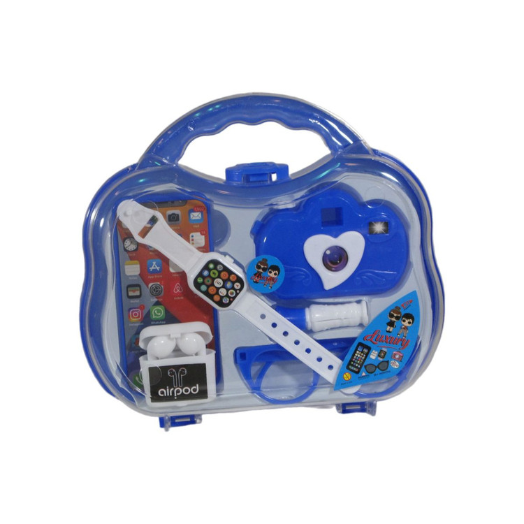 این روز ها با توجه به گسترش روز افزون استفاده از لوازم هوشمند ، کودکان نیز دوست دارند مانند بزرگ تر ها دارای گوشی موبایل ، ساعت هوشمند و لوازمی از این قبیل باشند. این محصول یک ست اسباب بازی شامل گوشی هوشمند ، ساعت هوشمند ، ایرپاد ، دوربین ، عینک و ... میباشد. با خرید این محصول دیگر نیاز نیست گوشی و لوازم هوشمند گران قیمت خود را برای بازی در اختیار کودک خود قرار دهید و لوازم شما از خطر آسیب در امان خواهند ماند