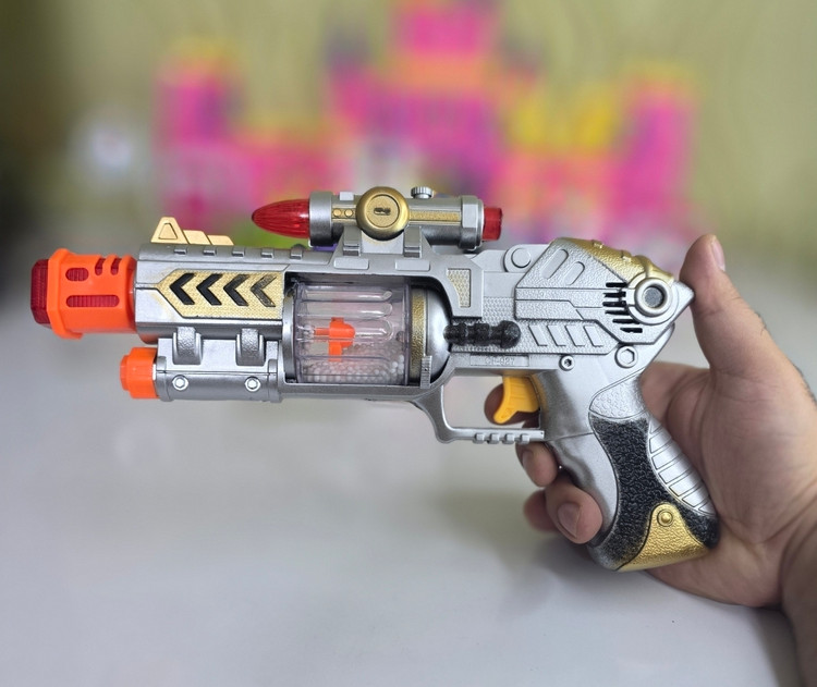 اگر به دنبال یک تفنگ چراغدار و زیبا برای کودک خود هستید ، گزینه ی خوبی را انتخاب کردید ، مشخصات را کامل مطالعه بفرمایید . ✅طول 26 س ✅سه عدد باطری میخورد. ✅کاملا بی خطر است . ✅ نور و لیزر هم دارد ✅️موزیکال همراه دونه برفی