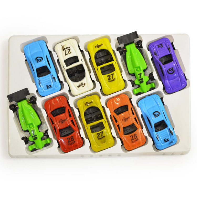 پک 10 عددی ماشین پلاستیکی شامل 10 عدد ماشین پلاستکی است که با فشار دست به حرکت در میآید.